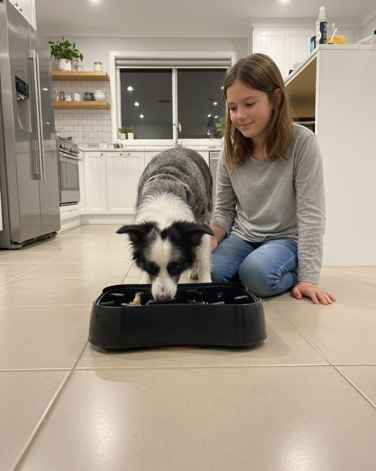 Bloat (GDV) occurs when a dog's stomach fills with gas and twists. Fast eating is the #1 preventable cause because gulping air along with food causes the stomach to expand rapidly. Super Feedy prevents this by: Slowing eating 5-10x - Our raised maze forces dogs to eat around obstacles, eliminating dangerous gulping Keeping the bowl stable - Our suction base prevents bowl-chasing that speeds eating back up Reducing anxiety - The lick mat function calms anxious eaters (stress is another bloat risk factor) Result: 87% reduction in choking incidents and significantly reduced bloat risk.